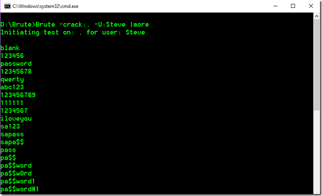 For the purposes of this blog I have created a user named Steve. To run the demo, we drop to a command prompt and execute the following: