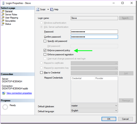 You can do this by checking the Enforce Password Policy box when the instance is on a domain.