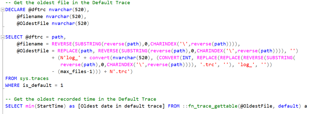 Have you ever tried to query the contents of the default trace and then spent more time trying to figure out the name of the oldest file than the actually analyzing the data?