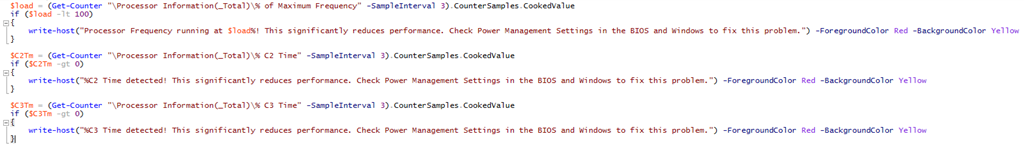 Tried changing the power settings in OS, but made no difference. Script still reported %C2 states.