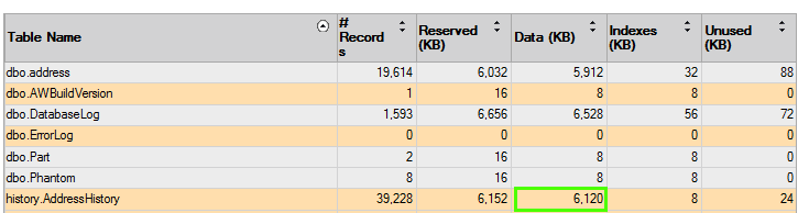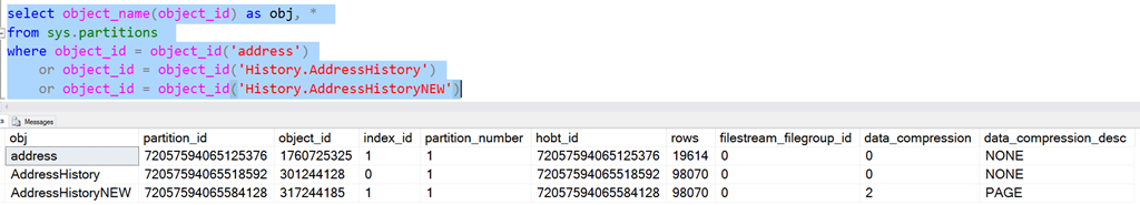 1. I’m using SQL Server 2017 (RTM-CU9-GDR) (KB4293805) – 14.0.3035.2, and I’m seeing a different result than yours; my history tables are not compressed, and there is a clustered index on ValidFromUTC+ValidToUTC. Do you have any guesses as to why there is a difference?