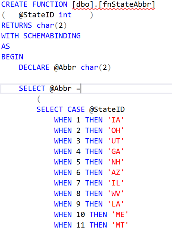 To test the value of scalar functions we created the the following code (note that it cuts off but you get the point)