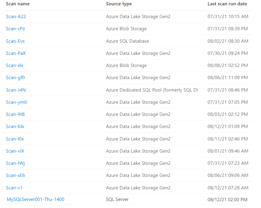 The catch with Azure Purview is you can’t schedule a scan daily. To do this you’d need to setup a scan for each day of the week and that’s really unnecessary. Instead Purview allows you to configure a weekly, monthly, or on-demand (once) scan. Since we’re talking about meta data for assets that shouldn’t change frequently weekly or monthly is just fine; but, this breaks my naming standard for ADF and SQL Agent.